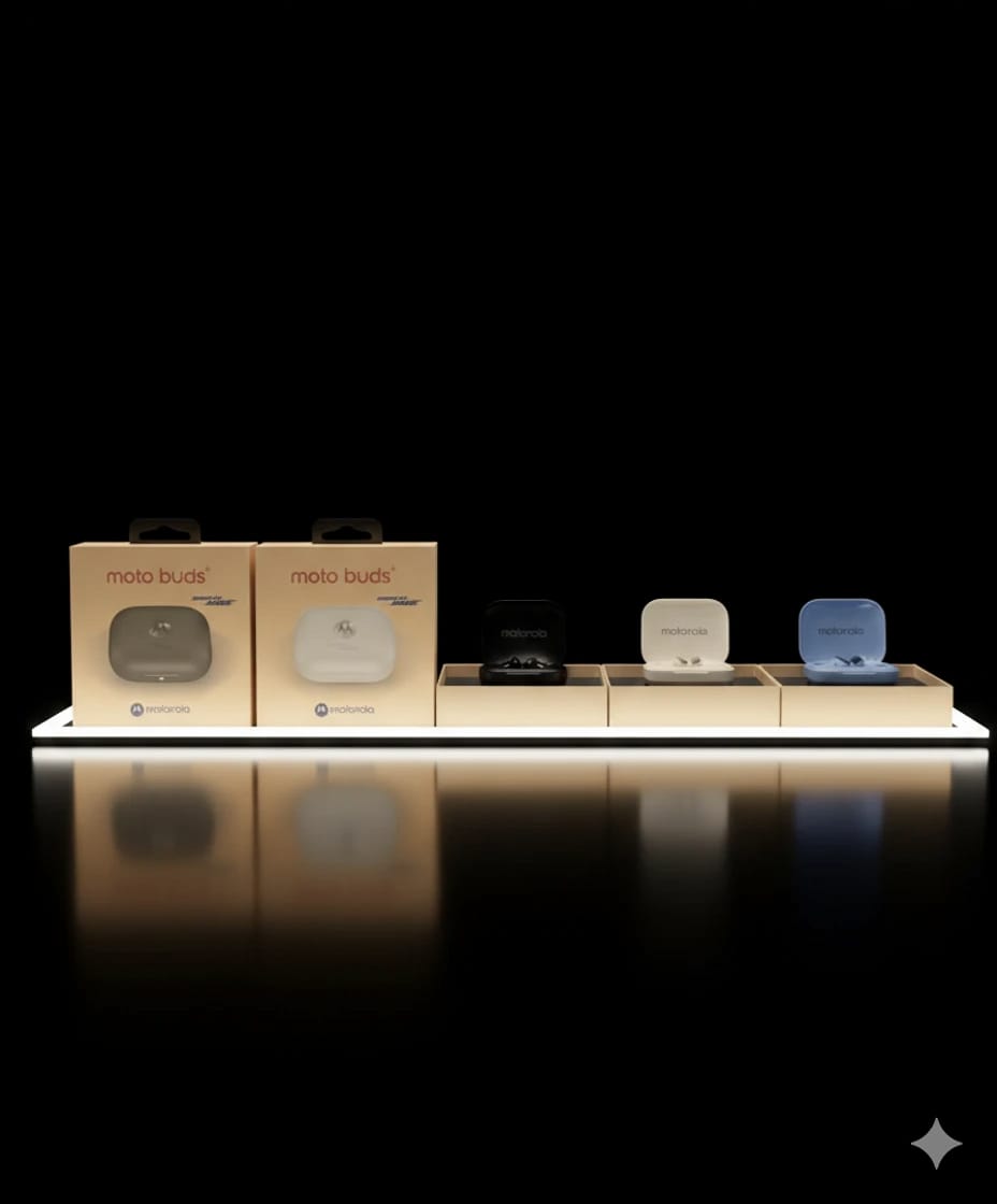 Experience premium audio with the Motorola Moto Buds+, designed in collaboration with Bose for exceptional sound quality. These wireless earbuds deliver deep bass, crystal-clear vocals, and Active Noise Cancellation for an immersive listening experience.